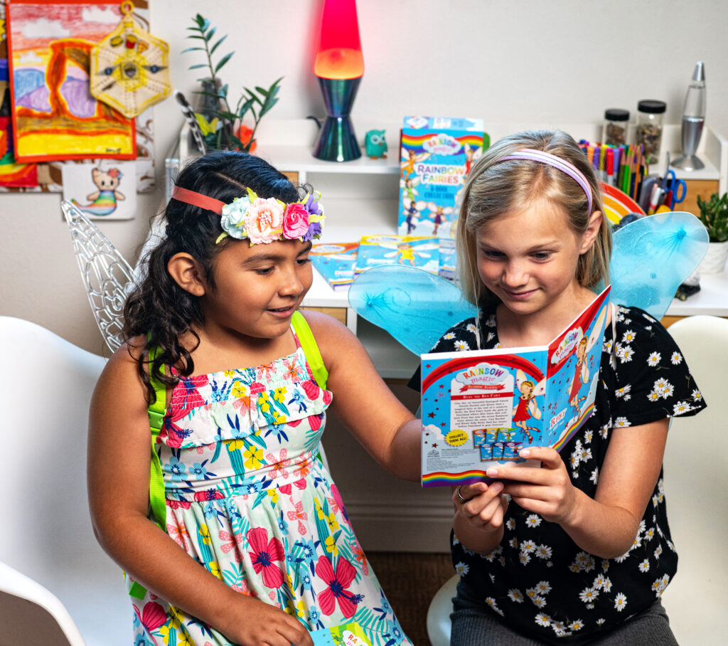 Why a book series and not just one stand-alone title? A book series takes the guesswork out of finding the next book to read, which can often be a roadblock for reluctant readers. With Rainbow Magic, each book sets up a challenge that the main characters must problem-solve over multiple books. Whether it’s finding the beloved animals of the pet fairies, getting back magical feathers for the weather fairies, or bringing all the colors back to Fairyland by finding all of the rainbow fairies, each book focuses on one fairy at a time, so kids will want to read them all.